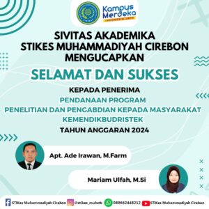 Civitas Akademika STIKes Muhammadiyah Cirebon mengucapkan “Selamat & Sukses” kepada Pendanaan Program Penelitian & Pengabdian Kepada Masyarakat Kemendikbudristek TA.2024 . Bapak Apt. Ade Irawan,M.Farm Ibu